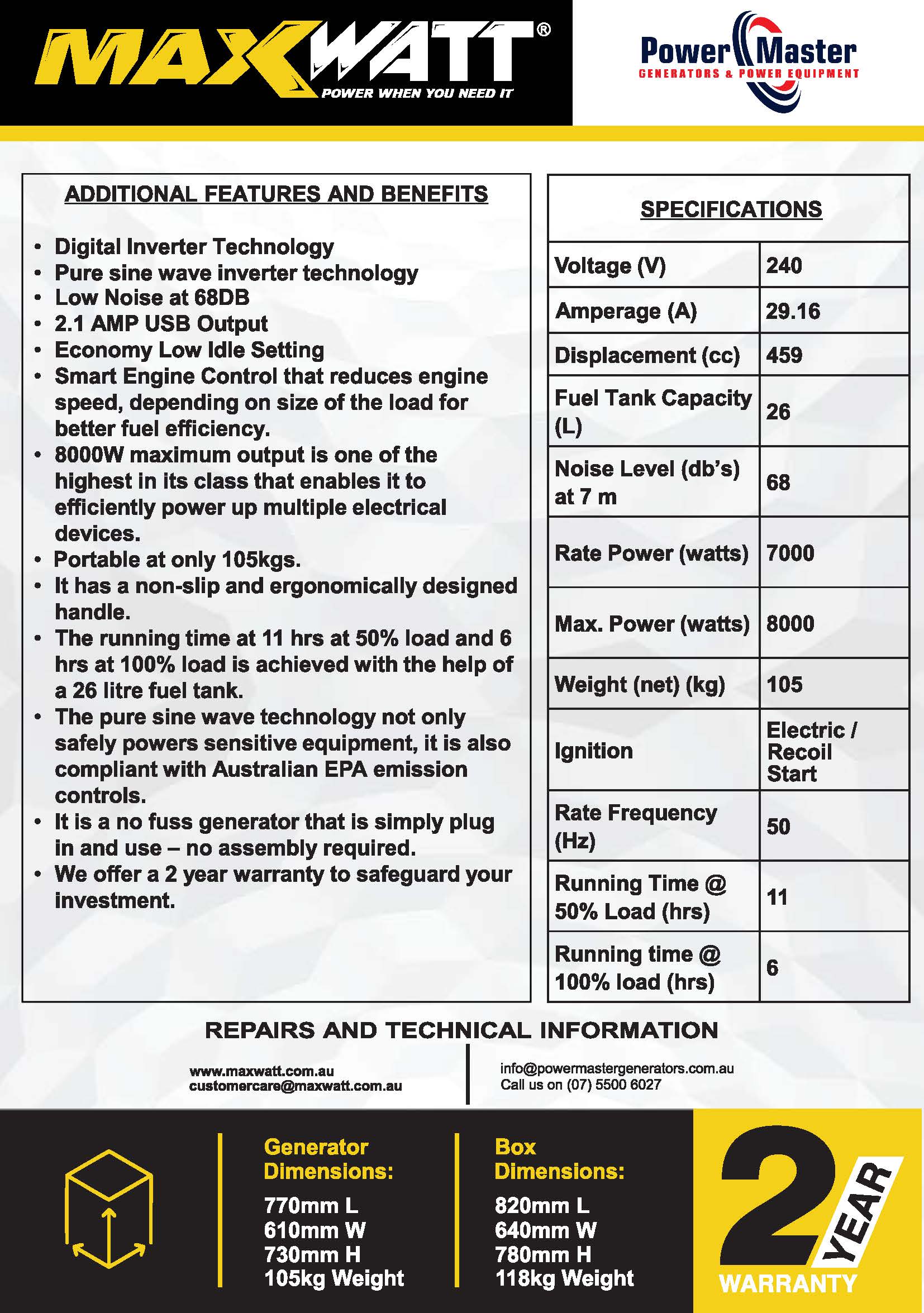 - Wide Coverage: Power Master Generators are located in Queensland and offer their services for sales and hire all across Australia. This means that people from anywhere in the country can have access to these generators whenever they need them.